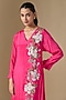 Embrace the sunny days with this pink crepe chiffon panel dress. Featuring beautiful hand embroidery, a V-neckline, full sleeves, and a fluid silhouette that adds movement and flair to the overall look. It is paired with an inner. Style it with jewelled flats, gold hoops, and a sling bag.