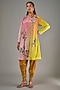 Featuring a pink short kurta in crepe chiffon base with gathered back and hand embroidery. It is paired with pants. Accentuate it with dangler earrings and block heels for festive celebrations or family gatherings.