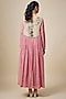 Featuring a pink anarkali dress in fine chanderi with hand embroidery. It is paired with an inner. Accentuate it with dangler earring and block heels for festive gatherings or garden parties.