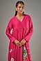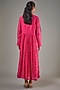Featuring a pink flared midi dress in fine chanderi base with hand embroidery. It is paired with an inner. Accentuate it with dangler earrings and block heels for festive celebrations or family gatherings.