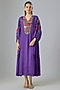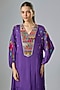 Featuring a purple dress in crepe chiffon base with embroidery. Accentuate with statement earrings and heels for evening wear.