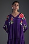 Purple Crepe Chiffon Embroidered Tiered Maxi Dress
