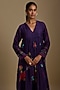 Purple Fine Chanderi Hand & Machine Embroidered Flared Dress