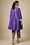 Featuring a purple short anarkali in heavy chanderi base with thread hand embroidery. It is paired with embroidered pants and an inner. Accentuate it with kundan polki earring and heels for festive gatherings or sangeet ceremony.