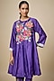 Purple Heavy Chanderi Thread Hand Embroidered Short Anarkali Set