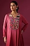 Featuring a red anarkali kurta in crepe chiffon base with embroidery. It is paired with embroidered pants. Accentuate it with kundan polki earrings and juttis for festive gatherings or pooja ceremony.