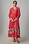 Featuring a red flared tunic in fine chanderi base with embroidery. It is paired with an inner. Accentuate it with dangler earrings and block heels for festive celebrations or family gatherings.