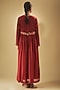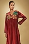 Featuring a red floral dress in fine chanderi base with hand embroidery. It is paired with an inner. Accentuate it with statement jewellery or heels for an evening look.