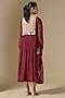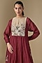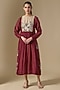 Bring a touch of effortless sophistication to your wardrobe with this red side-gathered dress. Crafted in fine chanderi fabric, it showcases floral hand embroidery, full sleeves and a relaxed silhouette. The dress is paired with an inner. Style it with jewelled wedges, statement earrings, and dewy makeup for a touch of glamour.