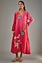 Red Fine Chanderi Hand Embroidered Midi Dress