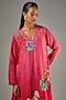 Featuring a red midi dress in fine chanderi base with hand embroidery and a side panel. It is paired with an inner. Accentuate it with dangler earrings and block heels for festive celebrations or family gatherings.