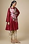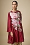 Featuring a red kalidar kurta in heavy chanderi base with thread hand embroidery. It is paired with embroidered pants and an inner. Accentuate it with kundan polki earring and heels for festive gatherings or pooja ceremony.