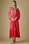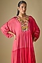 Featuring a red shaded midi dress in crepe chiffon base with gathered sleeves and spring embroidery. It is paired with an inner. This vibrant embroidered dress is perfect picks for festive luncheons, pre-wedding celebrations, or casual daytime gatherings.