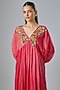 Featuring a red shaded dress in fine chanderi base with balloon sleeves and embroidery. It is paired with an inner. Accentuate with statement earrings and heels for evening wear.