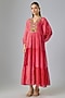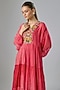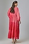 Featuring a red shaded dress in fine chanderi base with embroidery. It is paired with an inner. Accentuate with statement earrings and heels for evening wear.