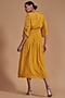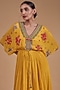Featuring a yellow dress in crepe chiffon base with hand embroidery.
