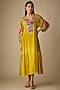 Yellow Crepe Chiffon Floral Embroidered Midi Dress