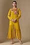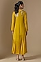 This yellow flapper dress is designed with crepe chiffon fabric, offering a light and elegant feel. It showcases exquisite hand embroidery, full sleeves, and a tiered flare hemline that adds movement and flair to the overall look. Style with jewelled flats, gold hoops, and a sling bag.