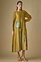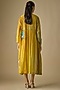 Yellow Fine Chanderi Blossom Embroidered Midi Gathered Dress