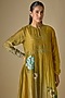 Featuring a yellow gathered midi dress in fine chanderi base with blossom embroidery. It is paired with an inner. This vibrant embroidered dress is perfect for festive luncheons, pre-wedding celebrations, or casual daytime gatherings.
