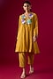Featuring a yellow kurta in fine chanderi base with embroidery. It is paired with pants and an inner. Accentuate it with kundan polki earrings and juttis for festive gatherings or haldi ceremony.
