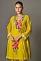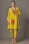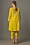 Featuring a yellow kurta in fine chanderi base with thread embroidery. It is paired with an inner and pants. Accentuate it with polki jewellery and heels for festive occasions.