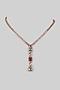Featuring a rose gold finish necklace studded with crystal in alternating green amethyst and multi-colored stones, set in copper. Perfect wear for festive occasions or wedding ceremonies.
