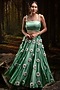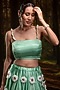 Featuring a mint green lehenga in gajji silk base with 3D floral hand embroidery. It is paired with a crop blouse. Accentuate it with statement earrings, a clutch and block heels for mehendi ceremonies.