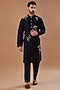 Featuring a black kurta in matka silk base with anchor hand embroidery. It is paired with cotton linen pants. Perfect wear for festive occasions or pooja ceremonies.