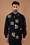 Black Matka Silk Hand Embroidered Nehru Jacket