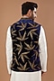 Featuring a blue nehru jacket in velvet base with cutdana hand embroidery. Perfect wear for cocktail or wedding ceremony.