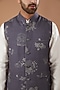 Featuring a bluish grey nehru jacket in tussar silk base with digital print. Perfect wear for festive occasions or wedding ceremony.