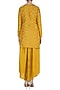 Featuring a mustard kurta in tussar silk base with zardozi embroidery and side slits. It is paired with matching high low pants.