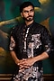 Featuring a black kurta in poly dupion base with print. It is paired with beige cotton silk churidar. Elevate the look with minimal accessories and classic mojaris for sangeet ceremonies.