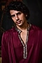 Burgundy Bamberg Satin Crystal Embroidered Kurta Set