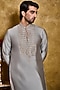 Grey-Green Cotton Silk Thread Kasab Embroidered Kurta Set