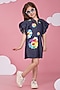 Featuring a blue dress for girls in denim base with hand paint. Accessorize it with matching hair accessories and sandals for a stylish ensemble, ideal for any festive occasion or birthday party.