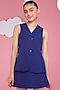 Featuring a blue top for girls in luxury crepe base. It is paired with a skirt. Style it with sandals and hair accessories for festive occasions.