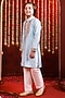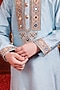 Featuring a light blue kurta for boys in silk base with embroidery. It is paired with pyjama pants. Team it up with a classic pair of kolhapuris and a bracelet for a festive occasion or pooja ceremony.