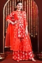 Featuring an orange kurta for girls in georgette and organza base with lace detail. It is paired with sharara pants and a dupatta. Style it with matching sandals and hair accessories for a festive occasion or sangeet ceremony.