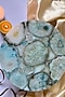 Introducing our Green Agate Cake Stand, crafted from semi-precious agate with metal base, each piece boasts unique patterns and hues. Perfect for elegantly showcasing cakes and adding sophistication to any occasion. Elevate your dessert presentation with this standout choice.