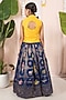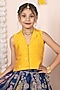 Featuring a blue skirt for girls in georgette banarasi base. It is paired with a yellow top. Accessorize it with matching hair accessories and sandals for a stylish ensemble, ideal for festive occasion, pooja or wedding ceremonies.