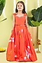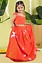 Featuring an orange lehenga for girls in cotton base with floral hand paint. It is paired with a top having aari work. Style it with sandals and hair accessories for a festive occasion or sangeet ceremony.