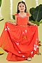 Orange Cotton Floral Hand Painted Lehenga Set For Girls