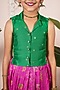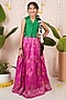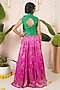 Featuring a pink skirt for girls in georgette banarasi base. It is paired with a dark green top. Accessorize it with matching hair accessories and sandals for a stylish ensemble, ideal for festive occasion, pooja or wedding ceremonies.