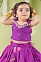 Featuring a purple skirt for girls in cotton base with handpaint. It is paired with a blouse having aari work. Accessorize it with matching hair accessories and sandals for a stylish ensemble, ideal for festive occasion, pooja or wedding ceremonies.