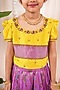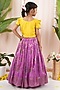 Featuring a purple pleated skirt for girls in meenakumari silk base. It is paired with a yellow top having aari work. Accessorize it with matching hair accessories and sandals for a stylish ensemble, ideal for festive occasion, pooja or wedding ceremonies.