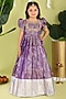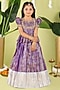 Featuring a purple lehenga for girls in tissue base. It is paired with a peplum top having zardosi work and puff sleeves. Style it with sandals and hair accessories for a festive occasion or sangeet ceremony.