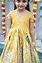 Shiny Yellow Soft Tissue Aari Peacock Gown For Girls