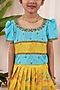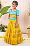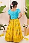 Featuring a yellow pleated skirt for girls in meenakumari silk base. It is paired with a blue top having aari work. Accessorize it with matching hair accessories and sandals for a stylish ensemble, ideal for festive occasion, pooja or wedding ceremonies.